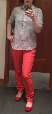 Overall, The only thing that went on my wish list is the blue striped popover. I though everything else was either more of the same (white capris), blah (chinos and maxi skirt) or overpriced (placket tee). Most of the items were both. I think I am pretty much done with my summer shopping.